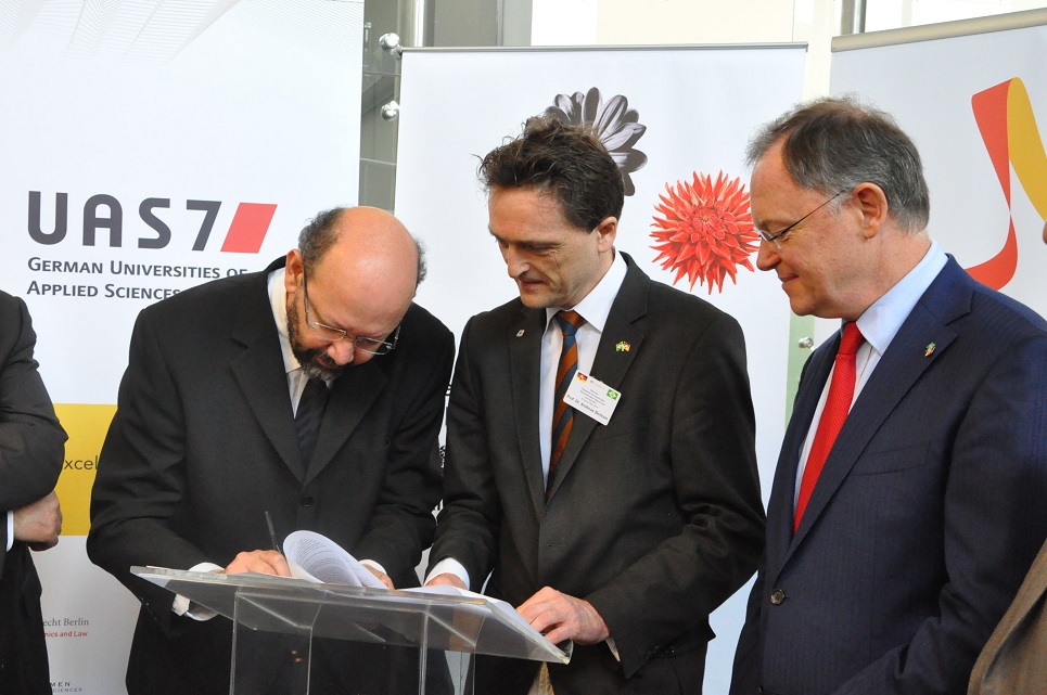 „Welche niedersächsischen Institutionen sind im DWIH São Paulo vertreten?“ Diese Frage interessierte die Staatskanzlei in Hannover, als sie die Reise des niedersächsischen Ministerpräsidenten nach Brasilien vorbereitete. Stephan Weil, derzeit nicht nur Regierungschef im zweitgrößten deutschen Bundesland, sondern auch Präsident des Bundesrates, wollte der Schaltstelle der deutsch-brasilianischen Hochschulvernetzung nämlich einen Besuch abstatten. Natürlich betreiben längst alle führenden Hochschulen und Universitäten Niedersachsens Austausch mit Brasilien. Personell im DWIH São Paulo vertreten ist indes nur eine: die Hochschule Osnabrück als UAS7-Mitglied. Für das Verbindungsbüro war der hochrangige Besuch am 21. März 2014 daher ein optimaler Anlass, die Osnabrücker Austausch-Aktivitäten publikumswirksam darzustellen – zumal Hochschulpräsident Prof. Andreas Bertram die Reise von Ministerpräsident Weil als Delegationsmitglied begleitete. Weiterlesen
